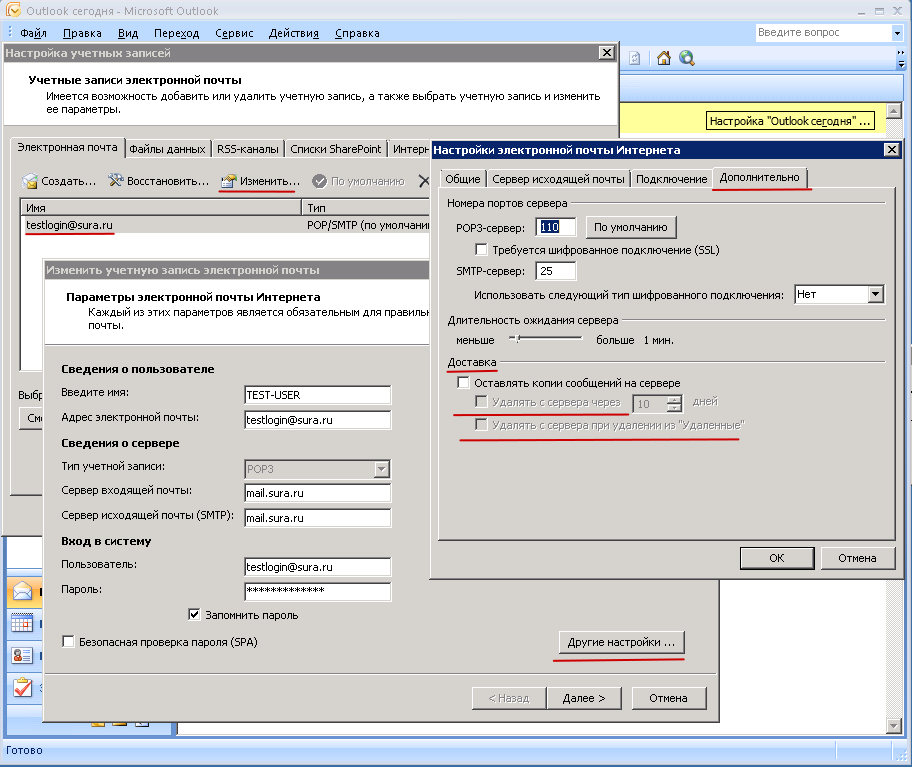 | Сервер исходящей почты (SMTP сервер) | mail.samtel.ru |